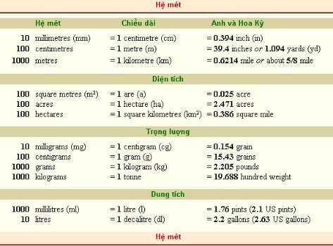 • giả dụ không tiêu dùng tên Việt hóa của những đơn vị buộc phải viết mét, lít và gam thành metrelitrevà gram – thay vì meterliter và gramme.